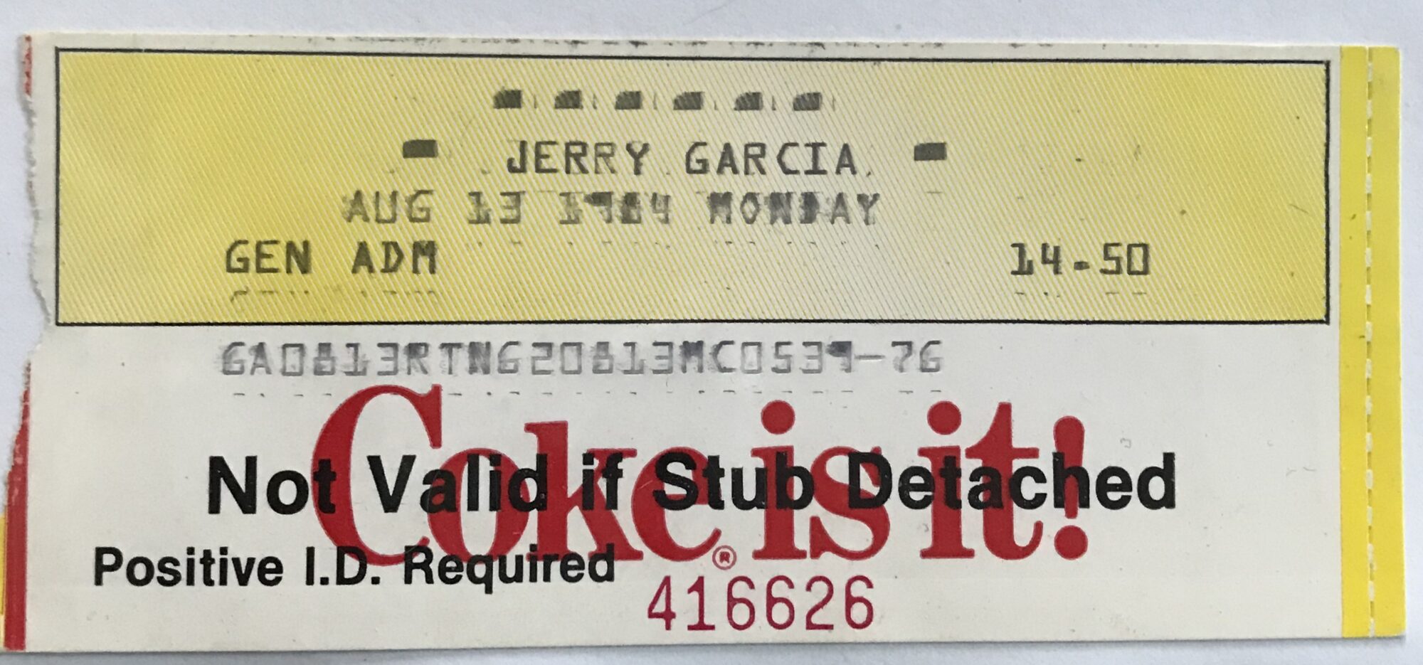 Had to be +21 to get in so my buddy Alex convinced his parents to bring us. They took one look at us when we arrived and sat us at a table right in front of Jerry. Spent the night open mouthed and stuck between gawking at Jerry and turning around to watch an expanding crowd of deadheads boogie at the back of the Casino… On the way home, Alex and I promised that we would get out at the first possible opportunity to see Jerry again, this time with those other guys he played with quite a bit…That time would be Saratoga in June 1985, another story indeed